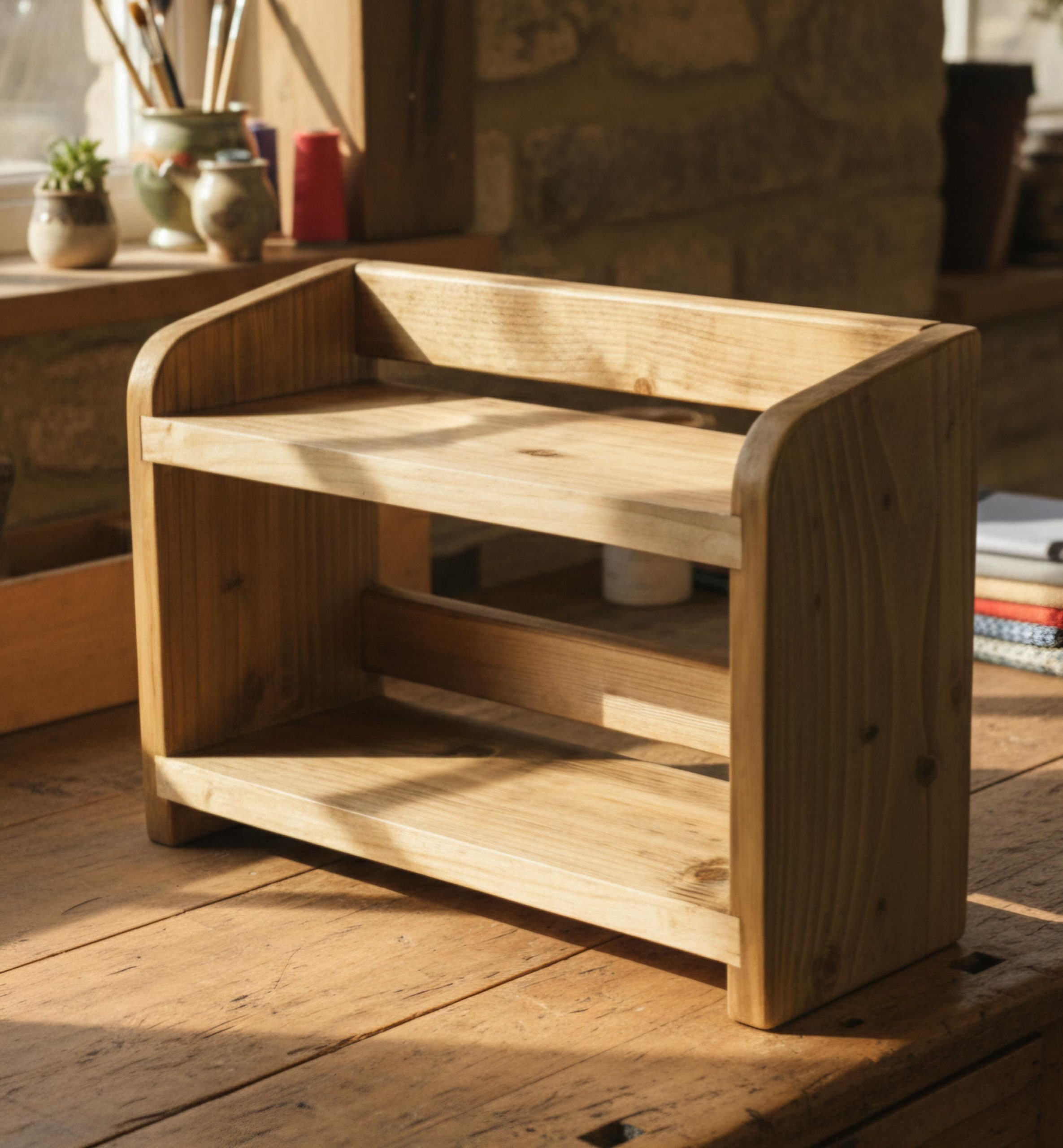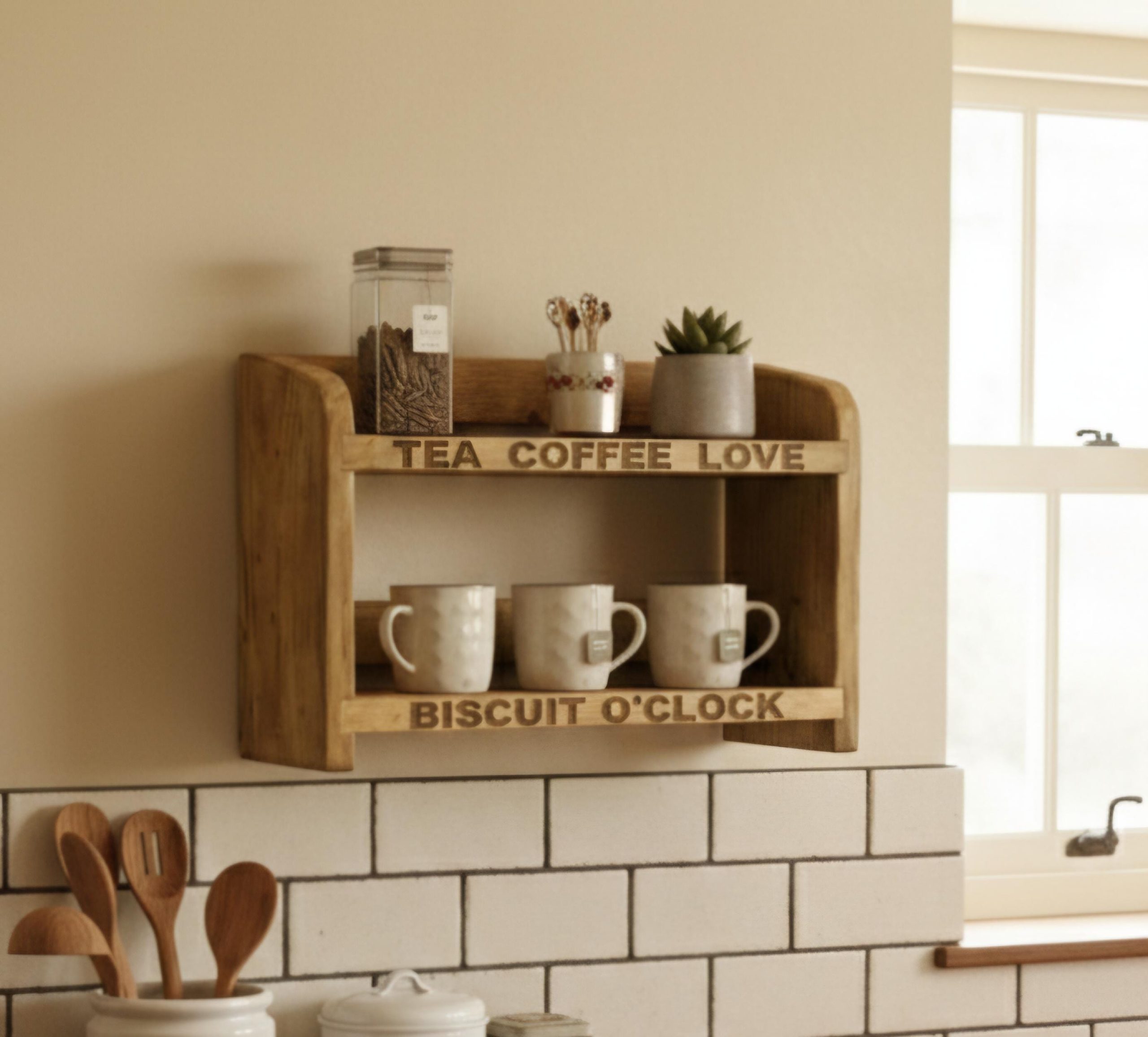 Wooden Kitchen Countertop Shelf: Space-Saving Organiser. Genuine Hand Crafted Artisan.